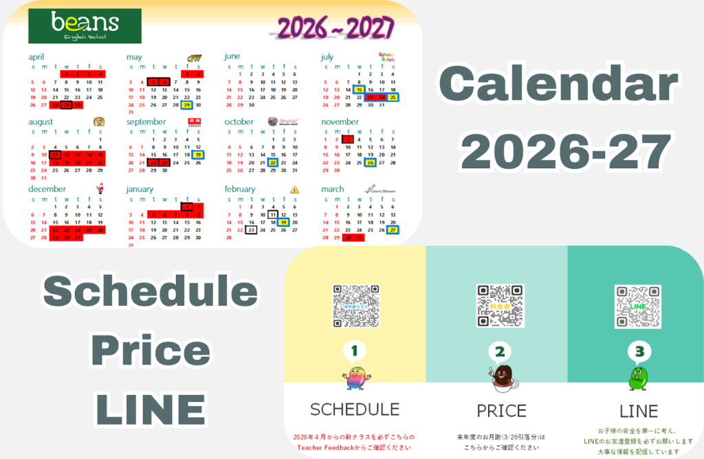 『どれぐらいで英語がペラペラになりますか?』よく聞かれる保護者の方からの質問です。もちろん個人差や努力にも寄りますが、自信をもってスムーズに外国人と英語を話すにはある程度の年数がかかります。ビーンズでは年齢とレベルにあった指導を行っています。小学生クラスでは、できるだけ多くのボキャブラリー(語彙)をより早く増やすことを可能にしていきます。日本では多くの子供達が中学校での英語の勉強を難しく感じる事があるようです。ビーンズでは中学生になるまでに英語を快適に感じることができるよう目標を定めています。